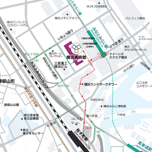 みなとみらい線(東急東横線直通)「みなとみらい」駅〈3番出口〉から、マークイズみなとみらい〈グランドガレリア〉経由徒歩3分、または〈マークイズ連絡口〉(10時~)から徒歩5分。JR(京浜東北・根岸線)・横浜市営地下鉄「桜木町」駅から〈動く歩道〉を利用、徒歩10分。